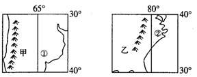C.甲、乙两山脉的西侧都有地中海气候分布