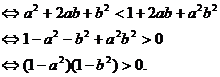 由|a|<1,|b|<1,可知(1-a2)(1-b2)>0成立,所以
