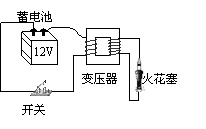 1.07届南京市综合检测题(一)5.汽车消耗的主要燃料是柴油和汽油。柴油机是靠压缩汽缸内的空气点火的;而汽油机做功冲程开始时,汽缸中的汽油-空气混合气是靠火花塞点燃的。但是汽车蓄电池的电压只有12V,不能在火花塞中产生火花,因此,要使用如图所示的点火装置,此装置的核心是一个变压器,该变压器初级线圈通过开关连到蓄电池上,次级线圈接到火花塞的两端,开关由机械控制,做功冲程开始时,开关由闭合变为断开,从而在次级线圈中产生10000V以上的电压,这样就能在火花塞中产生火花了。下列说法正确的是 ( )