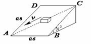 (8分)如图所示,矩形斜面水平边的长度为0.6m,倾斜边的长度为0.8m,斜面倾角为370,一与斜面动摩擦因数为μ=0.6的小物体重25N,在与斜面平行的力F的作用下,沿对角线AC匀速下滑,求推力F.