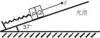 19.(8分)一弹簧一端固定在倾角为370光滑斜面的底端,另一端拴住的质量m1=4kg的物块P,Q为一重物,已知Q的质量m2=8kg,弹簧的质量不计,劲度系数k=600N/m,系统处于静止,如右图所示。现给Q施加一个方向沿斜面向上的力F,使它从静止开始斜向上做匀加速运动,已知在前0.2s时间内,F为变力,0.2s以后,F为恒力。求力F的最大值与最小值。(g=10m/s2)