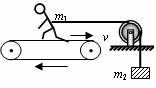 A.若m2静止不动,运动员对传送带的摩擦力大小为m1g