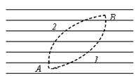 如图所示,平行直线表示电场线,但未标明方向,带电量为+10-2C的微粒在电场中只受电场力作用,由A点移到B点,动能损失0.1J,若A点电势为-10V,则
