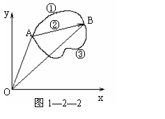 沿不同的轨迹运动,如图1-2-2所示,走过不同的路程。路程不能描述质点的位置的变化,