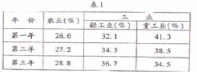 13.(09年山东卷) 表1反映了我国某一时期农业、轻工业和重工业在工农业总产值中所占比重的变化情况