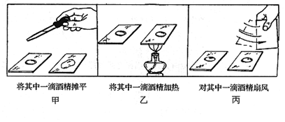 21.液体蒸发的快慢可能与液体的表面积、液体的温度以及液面上方空气的流动快慢有关,为了通过实验探究蒸发的快慢是否与这些因素有关,某同学做了如下三组实验,每组实验中分别滴在两块玻璃板上的酒精质量相等.请根据图中所示情景回答问题: (1)根据甲组实验可以判定液体蒸发的快慢与_____________是否有关 (2)根据乙组实验可以判定液体蒸发的快慢与_ ___________是否有关 (3)根据丙组实验可以判定液体蒸发的快慢与_____________是否有关
