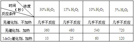 ⑴下表是该小组研究影响过氧化氢(H2O2)分解速率的因素时采集的一组数据: