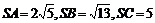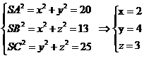 例2 四面体S-ABC的三组对棱分别相等,且依次为