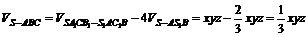 由图1,则四面体S-ABC的体积为长方体的体积减去四个等积的三棱锥体积,