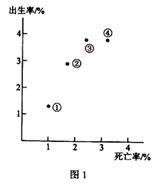 甲市2008年户籍人口出生9.67万人,出生率为0.699%; 死亡10.7万人,死亡率为0.773%.甲户籍人口这种自然增长态势已持续14年.下图显示四个地区的人口出生率和死亡