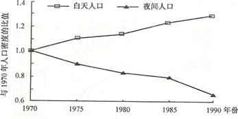 11.中心商务区白天人口与夜间人口密度的变化直接反映