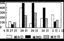 2007年4月28日-30日,华北地区经历了一次沙尘天气,造成许多地方空气污染指数(API)增高,主要污染物是可吸入颗粒物。读右图,回答19-20题。