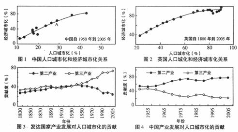 (2)图1、图2可以显示,总体而言,无论是我国还是英国,经济城市化水平与人口城市化水平两项指标相比,发展水平始终居高的是 。20世纪50年代以来,我国和英国相比,人口城市化水平较高的国家是 ,经济城市化与人口城市化发展水平的差异程度较大的国家是