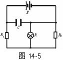 3.(★★★★)如图14-7所示,E=10 V,R1=4 Ω,R2=6 Ω,C=30 μF,电池内阻可忽略.