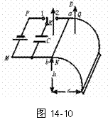 (★★★★★)图14-10所示,金属棒ab质量m=5 g,放在相距L=1 m的光滑金属导轨MN、PQ上,磁感应强度B=0.5 T,方向竖直向上,电容器的电容C=2μF,电源电动势E=16 V,导轨距地面高度h=0.8 m.当单刀双掷开关先掷向1后,再掷向2,金属棒被抛到水平距离s=6.4