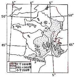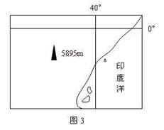 读“世界上某国家的经纬网和等高线图”(图3-2),回答45-47题。