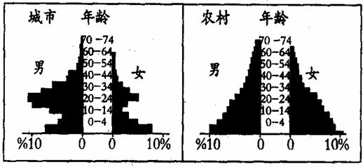 (三)读“1984-1995年我国流动人口数量的变动图”(下右图),完成下列要求:(12分)