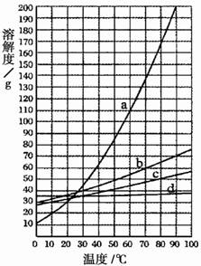 16.右图是a、b、c、d四种固体物质的溶解度曲线;