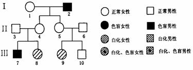 (3) 若Ⅲ-9和和一个其母患白化病的正常男子结婚,子女中只患白化病或色盲一种遗传病的概率是 。