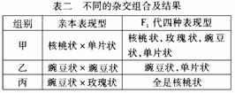 (3) 让丙组F1中的雌雄个体交配,后代表现为核桃状冠的有360只,那么表现为豌豆状冠的个体理论上有 。