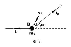 ,矢量和既不沿AB ,也不沿BC方向,可设v2与AB绳夹角为〈π-β〉,如图3所示),设C获得速度v3(合冲量