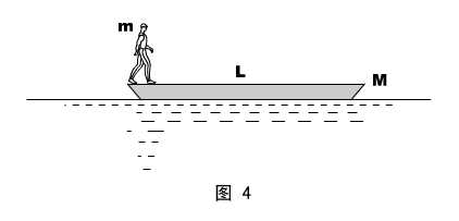 物理情形:如图4所示,长度为L、质量为M的船停止在静水中(但未抛锚),船头上有一个质量为m的人,也是静止的。现在令人在船上开始向船尾走动,忽略水的阻力,试问:当人走到船尾时,船将会移动多远?