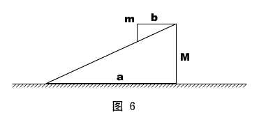 两个倾角相同的斜面,互相倒扣着放在光滑的水平地面上,小斜面在大斜面的顶端。将它们无初速释放后,小斜面下滑,大斜面后退。已知大、小斜面的质量分别为M和m ,底边长分别为a和b ,试求:小斜面滑到底端时,大斜面后退的距离。