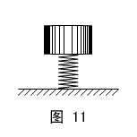 当然,求解功地问题时,还要注意具体问题具体分析。如上面的第3例,就相对复杂一些。如果认为所求为狭义的功,S取质心位移,是做了功,但结论仍然是难以令人接受的。下面我们来这样一个处理:将复杂的形变物体(人)看成这样一个相对理想的组合:刚性物体下面连接一压缩的弹簧(如图11所示),人每一次蹬梯,腿伸直将躯体重心上举,等效为弹簧将刚性物体举起。这样,我们就不难发现,做功的是人的双腿而非地面,人既是输出能量(生物能)的机构,也是得到能量(机械能)的机构--这里的物理情形更象是一种生物情形。本题所求的功应理解为广义功为宜。