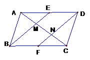 边AD、BC的中点,AC分别交BE、DF于点M、N. 给出下列