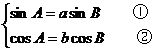 [例2]若sinA=asinB,cosA=bcosB,A、B为锐角且a>1,0<b<1,求tanA的值