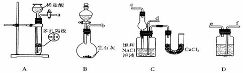(2)A中常选用的固体反应物为 ;D中应选用的液体为 ;B中发生反应的化学方程式为 。