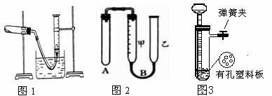 (5)用上图中图3的装置制取氢气,在塑料隔板上放粗锌粒,漏斗和带支管的试管中装有稀硫酸,若打开弹簧夹,则酸液由漏斗流下,试管中液面上升与锌粒接触,发生反应。产生的氢气由支管导出;若关闭弹簧夹,则试管中液面下降,漏斗中液面上升,酸液与锌粒脱离接触,反应自行停止。需要时再打开弹簧夹,又可以使氢气发生。这是一种仅适用于室温下随制随停的气体发生装置。