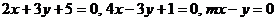 解:依题意,当三条直线中有两条平行或重合,或三条直线交于一点时,三条直线不能构成三角形,故