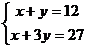 2x+y=15 x+y=12 x+3y=27 x+2y=0 |