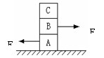 如图所示,A、B、C三个物体的质量相等,有F=1N的两个水平力作用于A、B两个物体上,A、B、C都静止,则地面对A物体、A物体对B物体、B物体对C物体的摩擦力分别为:( )