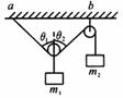 如图所示,绳子与滑轮的质量及摩擦不计,悬点a、b间的距离大于滑轮直径,物体的质量分别为m1、m2,若装置处于静止状态,则 ( )