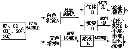 ,为检验溶液中所含的各阴离子,限用的试剂有:盐酸、硝酸、硝酸银溶液、硝酸钡溶液、品红溶液和酚酞试液。检验其中OH-的实验方法从略,检验其他阴离子的过程如下图所示。