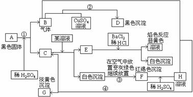 6. 根据图中的实验现象及转化关系判断A、B、C、D、E、F、G各是什么物质写出①、②反应的离子方程式;③④反应的化学方程式。