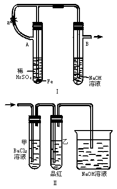 (2)上述装置的实验结束后,取A管内反应所得溶液,隔绝空气小心蒸干后,再高温煅烧(有关装置及操作已略去),最后留下红色固体。将分解时产生的气体按图11-5Ⅱ所示装置依次通过洗气装置,结果试管甲内出现白色沉淀,试管乙内溶液红色褪去。回答: