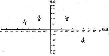 图1中的①-④地为世界四个著名的工农业生产发达地区,读图回答12-13题。