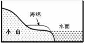学生在研究性学习时,在两个相同的长方形塑料盒子的一端用潮湿的土壤分别搭起一座相同坡度的“小山”,从盒子的另一端倒入等量的水,形成“湖泊”;不同的是在其中一个盆子内,将一块微湿的海绵压入“小山”底端的土壤里(见下图)。分别用两个喷水壶,往“小山”上洒等量的水,模拟降水,观察、比较两个盒子内水面发生的变化。据此回答14-15题。