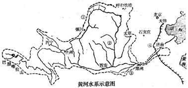 C. 黄河下游因降水量小而流域面积小    D.①②③④四段中流速最快的是②