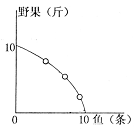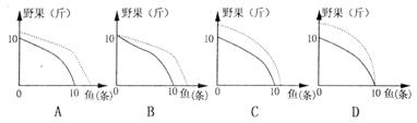 在经济学中,生产可能性曲线反映了在生产要素和生产技术既定时,所能生产出的各种产品的数量组合。下表记录了鲁滨逊独自在荒岛生活时一天所能获得的鱼和野果的数量,根据表中数据可绘制“鲁滨逊的生产可能性曲线”(见下图)。后来,鲁滨逊获得了一个奴隶“星期五”,“星期五”的捕鱼能力比采集野果的能力更强。两人一起工作时,新的生产可能性曲线是( )