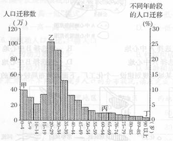 8.图中甲-丁不同年龄的人口迁移,有明显相关的是