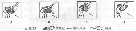 23.如下图,某城市规划建设一个化工厂,下面四种布局较合理的方案是