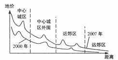 A.中心商务区地价高于工业区 B.中心商务区工业用地减少