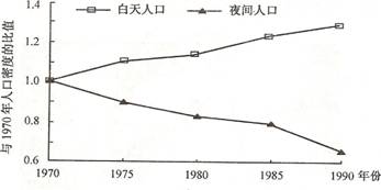 11.中心商务区白天人口与夜间人口密度的变化直接反映