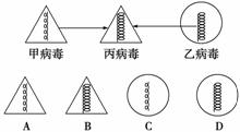 甲、乙为两种不同的病毒,经病毒重建形成“杂种病毒”丙,用丙病毒侵染植物细胞,在植物细胞内产生的新一代病毒可表示为