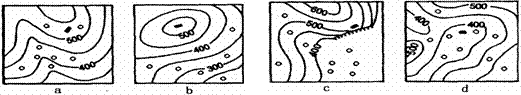 7.图一是四幅等高线地形示意图,能体现“深山藏古寺”意境的是 ![]()