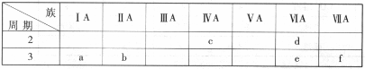 D.c、e、f的最高价氧化物对应的水化物的酸性依次增强